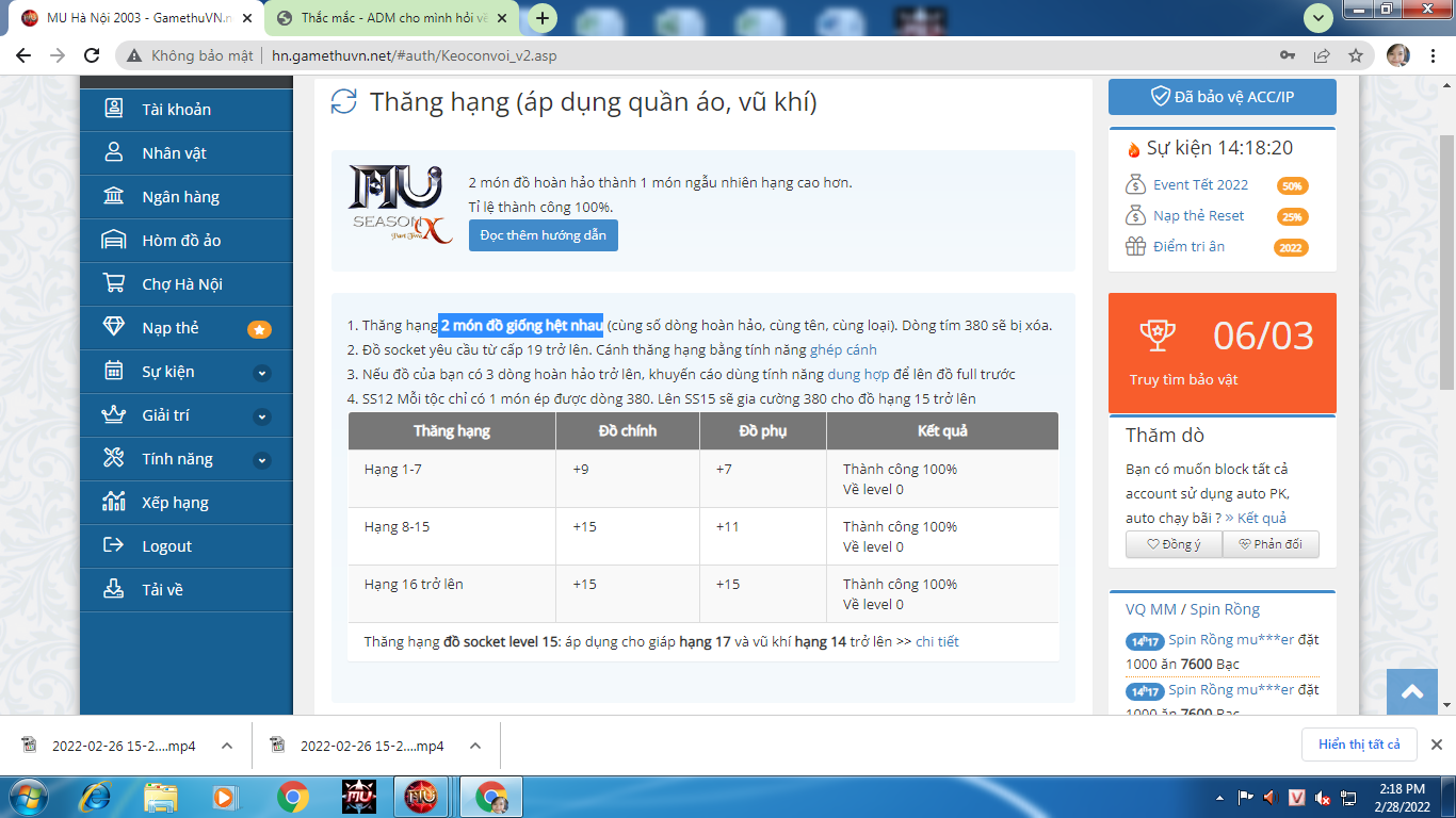Ví dụ mình muốn nâng hạng nhưng đồ chính là đồ Ex còn đồ phụ là ex socket vậy có thể nâng được không ạ ?