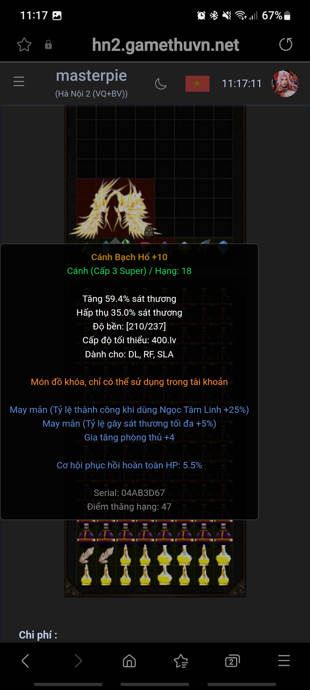 Thanks nhé ! Lên w3 thường giờ giá Ruud Đắt gấp 2 lần bạn ơi chưa kể Chaos và Ngọc đập vào để quay lên Cánh Định làm 1 cái đeo cho đẹp ACC mà thôi