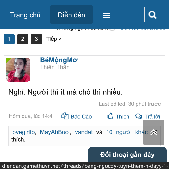 Thế mà có 1 đảng viên, 1 có vợ, 1 chưa rõ (nhưng thấy hay chê FA lắm) đã cắn câu =))