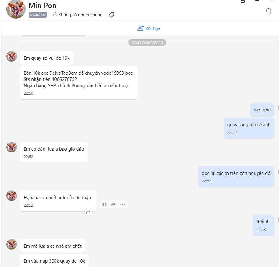 1. Cái vấn đề ở đây là: nó lừa không qua trung gian, giao dịch cá nhân thì trung gian không đủ quyền hành để can thiệp. Vì admin nói tất cả những giao dịch không qua trung gian nếu xẩy ra vấn đề gì thì không đc giải quyết.
