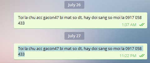 Thông báo Đổi số điện thoại đăng ký account qua SMS