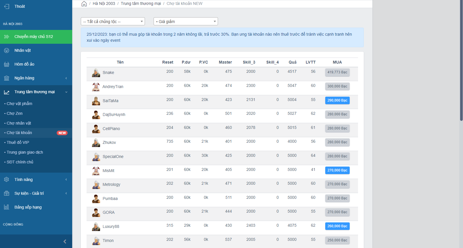 8. bên SS12 fan bán acc = giá chủ acc vay cũng rẻ :))