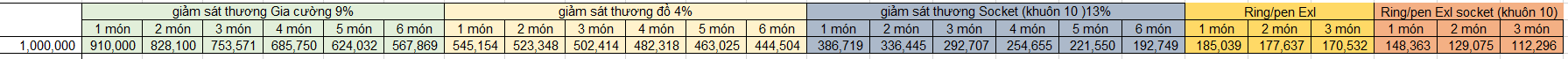 Về cơ bản nếu 1 nhân vật mà trang bị đủ đồ GST 9% gia cường. 4% dòng exl , và socket khuôn 9 bao gồm ( quần, áo, tay, chân, giày, khiên) thì sẽ giảm sát thương được gần 80%.