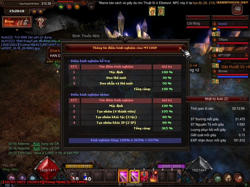 Ad ơi kiểm tra lại giúp với , cốt rồng với nhẫn cốt rồng cốt rồng + nhẫn là 30 + 30 + 50 =110% (exp nhân đc 187k/s) thần mã event + 4 = 90% (exp 203k/s) tính ra là nó hơn tận 20% châm chước lắm cũng phải ngang với thần mã , mà lại thua Hoặc là do em đọc sai AD kiểm tra lại giúp với