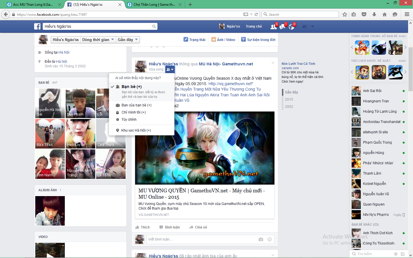 Bấm vào tùy chỉnh ấy bạn. Cái này là do bạn cài đặt quyền riêng tư thôi