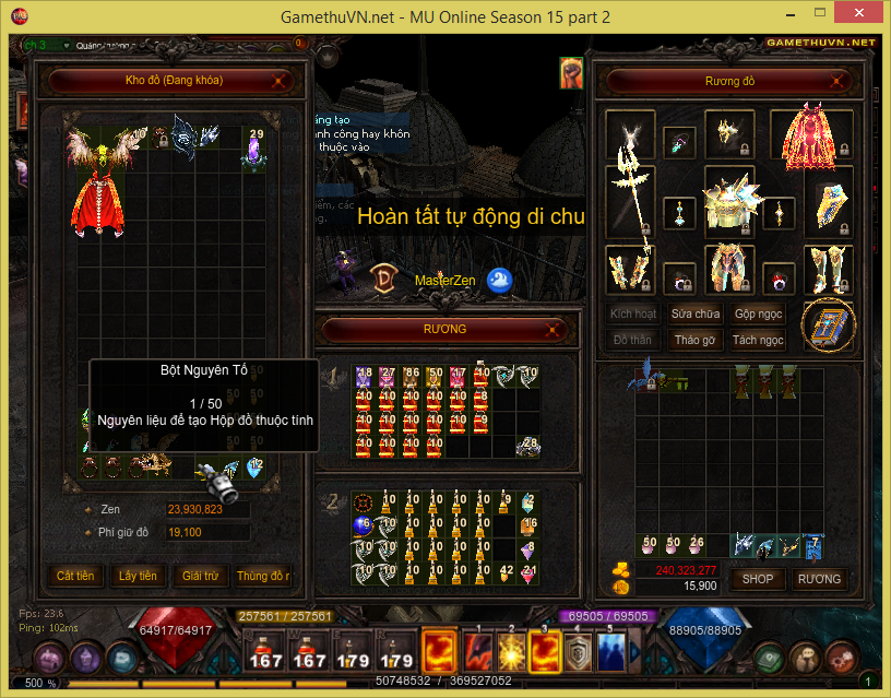Bấm chuột vào cái mục "Tháo Gỡ" như trên hình, rồi gõ vào ngọc linh thạch thôi bạn.
