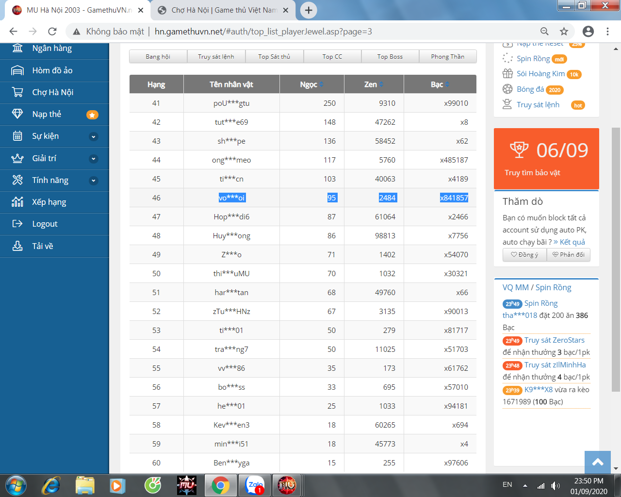 4 triệu đc 50k bạc 10k cas 500 ruud 100 điểm quả