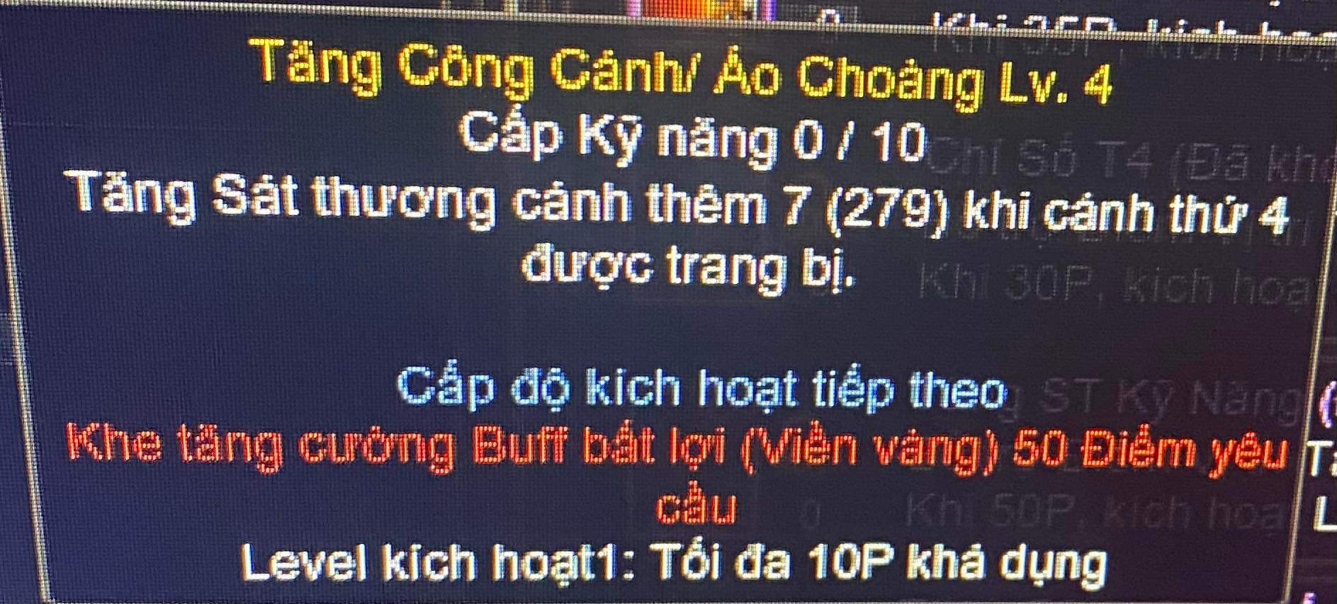 E tưởng cộng vào buù bất lợi nhưng cộng 50 điểm r mà k cộng được vào ô cánh :(