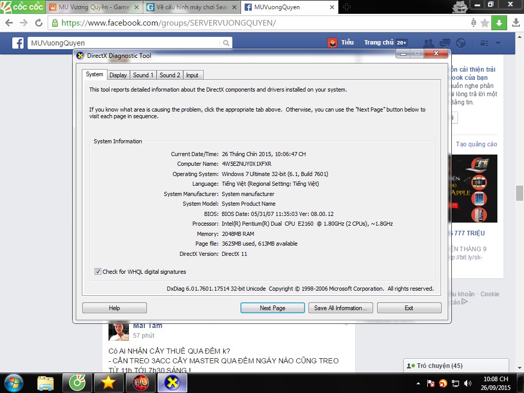 cho e hỏi có cách nào giảm bớt giật lag màn hình khi chơi MU ko , e log co 1 acc mà di chuyển con chuột chậm màn hình giật giật khó chơi quá , đây là cấu hình máy e