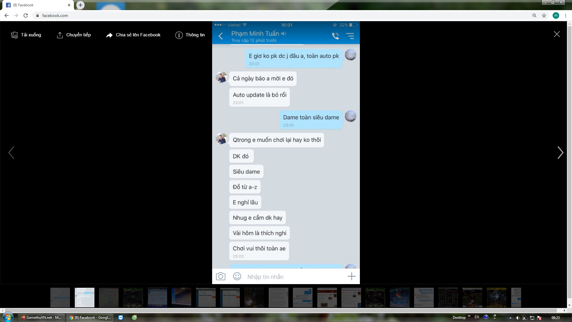 7. Ai cũng tưởng m có ảnh hưởng từ cái giải đấu trường storm . Thành ra đồn miệng nhau =)) ai cũng nghĩ m pro =)) Hồi đấy thằng cường nó ko thay đổi cách luật lúc đó thì m làm gì có giải và cái danh tiếng như này. *** phải lúc đó battu no nản ko tham gia nữa . Đúng là ng tổ chức có quyền thay đổi nhưng quá thiên vị . Cái thời storm pk battu ai cũng tưởng 1 mình m làm nên chuyện . Nhưng thật m phải hiểu NTN . Pk G chủ yếu là tập thể riêng gi cá nhân nào . M tưởng 1 mình m làm nen sự khác biệt chắc ? . Thời đấy battu nó cũng nghỉ game gần hết thì mới nát ko thôi còn lâu . Đừng nghĩ m là tất cả m chưa là gì cả :)